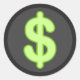 Pegatinas de divisas con un símbolo o signo de dólar verde en un fondo gris y negro. Disponible en muchos colores.