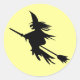 Estos pegatinas de Halloween tienen una bruja voladora clásica sobre una silueta de palo de escoba. Personalizar a estos lindos pegatinas voladores de brujas para Halloween cambiando el color de fondo del amarillo y/o agregando un mensaje personal de Halloween o nombre a tus pegatinas. Idea única para regalar en Halloween para trucos o dulces.