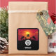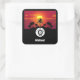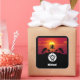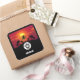 Silueta de tortuga de mar negro bajo un monograma de diamante. Encima del reptil hay una imagen de palmeras en la playa, hechas en una silueta al atardecer. La foto puede ser reemplazada por tu propio selfie. Debajo del emblema de la tortuga hay una opción de etiqueta de nombre.