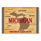 Imagen del orgullo del estado de Michigan incluyendo silueta del mapa con las ciudades, los pueblos y apodo.