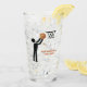 Essilueta negra y vidrio personalizado de baloncesto naranja. Muestra un minimalista ícono de pictograma de una silueta negra de un jugador de baloncesto sosteniendo una pelota frente a la canasta.