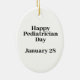 Este adorno incluye la silueta de un pediatra masculino con siluetas de niños y un bebé en la parte delantera. En la parte de atrás dice "Día Nacional del Pediatra" y la fecha del 28 de enero. Pero, puedes cambiarlo si no quieres esto para la observancia. En la parte de atrás puedes poner el nombre del médica y el año que quieras. O poner lo que quieras en la espalda. Esto es un gran regalo para el miembro de la familia que es pediatra para ser representado en el árbol de Navidad. O, hace un gran regalo para tu pediatra favorita para Navidades, el Día Nacional del Pediatra (28 de enero) o justo cuando quieras. NOTA: Debido al estilo de diseño, sólo se puede comprar en los adornos OVAL. Diseñado por Sheila Cicchi, Brownielocks.com. Todos Los Derechos Reservados.