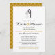 Invitación de la boda que ofrece siluetas de novia y del novio con acentos del oro. Elija sus colores de fondo y de acento.