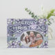 Desee a sus amigos y familia una Feliz Navidad con esta clásica tarjeta de fotos de vacaciones. Las puntias y copos de nieve son imágenes de Navidades tradicionales. Este maravilloso y suave patrón de flores de temporada violeta es perfecto para toda la temporada de vacaciones. Este adorable patrón envía un sentimiento de paz y alegría. Las puntitas hechas a mano aportan un toque de tradición y nostalgia. En la parte delantera de esta tarjeta horizontal agrega tu foto favorita y cambia el año. El texto de la parte posterior de la tarjeta es totalmente personalizable. Agregue su mensaje y nombres de personalizado.