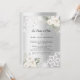 This white florals Spanish 25th wedding anniversary invitation (Bodas de Plata) features a sophisticated silver floral design with white accents, beautifully rendered for both paper printing and digital download.
