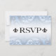 Este recinto RSVP presenta el clásico fleur de lis de hierro contra un fondo de tapicería descolorido - negro y azul rico. Está diseñado para el papel metálico plateado mostrado - pero, siéntase libre de elegir TU papel favorito. Este elegante diseño también está disponible para invitaciones. ¡Lleva el tema por ti todo el día de celebración!