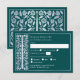 Celebrate your special day with these royal medieval sword wedding RSVP cards against a teal background. You can customize this further by clicking on the "PERSONALIZE" button. PLEASE NOTE: The silver on this item is NOT real foil and is printed in flat colors
