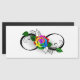 símbolo de infinito con rosa arcoíris sobre fondo blanco.