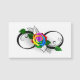 símbolo de infinito con rosa arcoíris sobre fondo blanco.