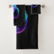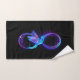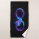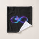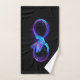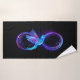 Símbolo de infinito violeta y brillante con colibrí azul sobre fondo negro. Neón.