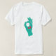 Estas camisetas muestran mi pintura del símbolo de la mano, signo, ok, en verde agua. Las cartas están escritas en rojo a través de la mano. Usé mi propia mano como modelo para este diseño. Por CherylsArt en Zazzle.