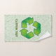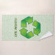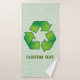 Símbolo de reciclaje con sombra de carpintería sobre hojas sin costura. Texto personalizado.