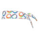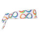 Símbolo claro de infinito de capas plásticas de colores saturados rojo, amarillo, verde, turquesa, azul y violeta sobre fondo blanco.