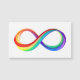 Símbolo claro de infinito de capas plásticas de colores saturados rojo, amarillo, verde, turquesa, azul y violeta sobre fondo blanco.