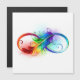 Símbolo de infinito dibujado artísticamente con hermosa pluma arco iris sobre fondo blanco. Estilo tatuaje.