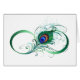 El símbolo del infinito con una pluma de pavo real brillante, verde y artística sobre un fondo blanco. Estilo tatuaje.