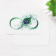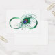 El símbolo del infinito con una pluma de pavo real brillante, verde y artística sobre un fondo blanco. Estilo tatuaje.