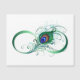 El símbolo del infinito con una pluma de pavo real brillante, verde y artística sobre un fondo blanco. Estilo tatuaje.