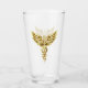 Símbolos dorados del Caduceus poligonal sobre fondo negro aislado. Símbolo de polos bajo de la medicina.