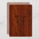 Un elegante y moderno Símbolo Taurus Zodiac sobre fondo de impresión de granos de madera de caoba marrón. Un diseño moderno urbano elegante para una gran idea de regalo personalizado. Utilice el vínculo "Preguntar a este diseñador" para contactarnos con sus solicitudes de diseño especiales o para obtener ayuda con sus proyectos de personalización.