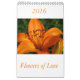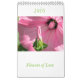 Calendario agradable con las flores - simbols del amor. Dalia de la amapola del lirio del hollyhock del phlox de Bell del iris