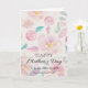 Una tarjeta de saludo del día de la madre, de tipo tipográfico simple y elegante, presenta un fondo floral de color claro con el texto de su personalizado.