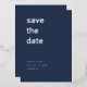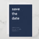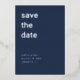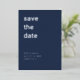 Simple Navy Blue Guardar la invitación al Relieve metalizado de fecha, por favor, personalice la parte delantera de la fecha Guardar con los nombres de la pareja que se casa, la fecha del boda y la ubicación del boda (u otro texto de su elección), usando la plantilla de personalización en línea antes de hacer el pedido. Este diseño Save the Date presenta un hermoso texto de Relieve metalizado metálico real en la parte delantera, en un diseño minimalista sencillo y elegante. El fondo de la parte delantera de la tarjeta es azul marino; la parte trasera también es azul marino. Este diseño es rápido y fácil de personalizar y se puede usar para un boda u otro tipo de celebración planificada como aniversario, cumpleaños o reunión familiar.