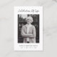 Esta elegante y sencilla tarjeta de oración ofrece una manera sincera de honrar a un ser querido. Con "Celebración de la Vida" en escritura suave y espacio para una foto atesorada, el frente marca un tono cálido y personal. En la parte de atrás se muestra el querido poema "Solamente toma lo mejor" junto a una sutil cruz, lo que lo convierte en un reconfortante sake para amigos y familia. Perfecto para servicios conmemorativos o celebración de reuniones de vida, esta tarjeta refleja la fe tranquila, el amor y el recuerdo.