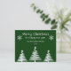 Simple Christmas Tree Line Art Merry Christmas Card, Tarjeta de Navidad. Estos elegantes dibujos de la línea de árboles de Navidad tienen una simple línea blanca que forma la forma de 3 árboles de Navidad sobre un fondo verde. Un elegante guión de caligrafía en blanco dice "FELIZ NAVIDAD Y AÑO NUEVO FELIZ". El nombre, el año y el mensaje interno se pueden personalizar o simplemente borrar el texto para mantenerlo en blanco para su propia nota manuscrita.