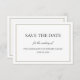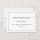 Tipografía clásica simple Guardar la tarjeta de invitación de boda de fecha. Diseño horizontal con texto de guión elegante y en bloque dentro de un borde de doble rayas delgadas. Monograma pequeño en la parte posterior. Para ajustar el diseño, haga clic en Personalizarlo, Editar texto y, a continuación, haga clic y arrastre las secciones de texto a las ubicaciones deseadas. Utilice Ctrl para seleccionar y mover varias secciones a la vez. El monograma de la parte posterior se puede eliminar borrando el campo de texto o eliminando la entrada en la vista de diseño como se ha indicado anteriormente.