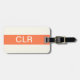 Viaja con estilo con una etiqueta para el equipaje que puede personalizar con iniciales o nombre en la parte delantera en una moderna letra de marfil sans serif en una franja de naranja de coral sobre un fondo de marfil. Lo inverso es un fondo de coral con un lugar para añadir tu nombre, dirección, teléfono y correo electrónico. Simplemente elimine las líneas que no desee o agregue otras de su preferencia. Haga clic en personalizar más adelante para cambiar los colores o el tipo de letra.