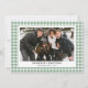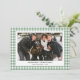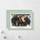 Envía cálidos deseos de vacaciones con nuestra tarjeta de Navidad con foto de cuadros gingham verdes de estilo vintage simple. Con un patrón clásico de cuadros gingham verdes con un toque nostálgico de estilo vintage, esta tarjeta enmarca hermosamente tu foto familiar favorita. Su diseño limpio y atemporal evoca un ambiente acogedor y festivo, perfecto para celebrar la temporada con seres queridos. Personalízala con el nombre de tu familia y un mensaje sincero para crear un encantador recuerdo que capture el espíritu de las fiestas. Ideal para aquellos que aman los diseños inspirados en el estilo vintage con un toque de simplicidad, esta tarjeta traerá alegría a todos en tu lista.