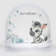 Cute baby shower or birthday snow globe gift or favor, featuring adorable little male zebra sitting on clouds with some blue love hearts