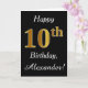 Este sencillo diseño de tarjetas de cumpleaños incluye el mensaje "Feliz décimo cumpleaños", con el "décimo" en apariencia de oro falso. También incluye un nombre personalizado y un fondo negro. Se podría dar a alguien que esté celebrando su décimo cumpleaños.