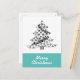 Simple tarjeta postal navideña negra de árbol de Navidad. La postal tiene un simple árbol de Navidad negro con diferentes patrones en un fondo blanco y un texto de Feliz Navidad en el guión de moda.