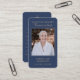 Dimensiones de la tarjeta de presentación: 3,5" x 2,0". Esta simple plantilla de tarjeta de plegaria conmemorativa en un fondo azul clásico con elegante tipografía de escritura dorada puede ser dada como un aguijón en una Celebración de la Vida o servicio funerario o como un tributo especial a los que no pudieron asistir. Personaliza esta tarjeta con una foto, nombre, fecha (parte delantera de la tarjeta) favorita y tu elección de oración o poema (parte trasera de la tarjeta). Fácil de personalizar.