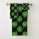 Green monstera leaf pattern on black Bath Towel Set. Elegant simple design for everyone!