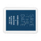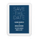 Simple Guardar el imán de fecha en azul oscuro y blanco con un diseño de tipografía moderna. Esta moda y moda ahorran la fecha imán es fácil de personalizar con los detalles de su boda. Para obtener más opciones de personalización, haga clic en el botón Personalizar.