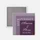 Sencillo imán boda de escritura de moda moderna 'SAVE NUESTRA FECHA' para novias que están adornando sus ceremonias en púrpura moderno. Todo puesto en un tipo de letra blanco moderno con iniciales en el lateral.