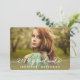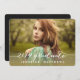 Perfecta tarjeta fotográfica invitando a su familia y amigos a la fiesta de graduación de su hija. Simple| Invitación a la fiesta de graduación para 2014. Diseño de Elke Clarke © para MonogramGallery en Zazzle.com. Agrega tu propia foto y texto. En el frente se imprime un simple texto en blanco con las palabras "Graduado 2014" con un ligero efecto rojo dorado. Añade tu texto de invitación en la parte posterior de la tarjeta con una fuente blanca moderna en un efecto fotográfico impreso de fondo de pizarra negra. Otros estilos y colores disponibles.