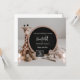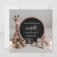 Una simple escena neutra prefecta para la invitación del embarazo con una tierna jirafa sentada al lado de un tablero de cartas. El embarazo de la jirafa se revela en las redes sociales: invitación de embarazo, tonos neutros, carta de cartas, revelación minimalista y elegante del embarazo, invitación de personalizable.