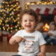 Bring on the holiday cheer with this adorable Baby Fine Jersey T-Shirt! The graphic features a charming, cross-stitch style design that mimics a festive "ugly sweater" pattern, including reindeer sleds and snowflakes. The warm red and green text reads "SIMPLE JOYS CHRISTMAS CHEER". This soft, comfortable tee is perfect for toddlers and babies for their holiday photos, festive gatherings, or for a comfy, cute outfit during the winter season.