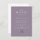 Tarjeta de respuesta RSVP de la boda Minimalista de lavanda simple. Cena y baile. Código QR