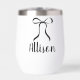 This personalized thermal wine tumbler features a sleek black and white design accented with an elegant bow and a custom name in a soft, handwritten script. Clean, timeless, and effortlessly chic, it’s made for bridesmaid gifting that feels thoughtful without being overdone.