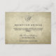 Esta tarjeta de detalles de recepción tiene un aspecto vintage, su papel impreso para parecer desvanecido y manchado. Fuentes elegantes y un monograma simple.