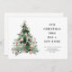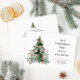Anuncie su nuevo hogar de vacaciones a la familia y amigos con este moderno diseño de navidades florales de invierno, con un ilustracion de árboles de navidad.