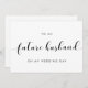 Una tarjeta de regalo simple y minimalista para escribir un mensaje personal y sincero para su futuro marido en el día de su boda. Personalizable completo con tus colores favoritos (texto y fondo). Puede agregar un mensaje en la parte posterior o dejarlo en blanco si prefiere escribir a mano más tarde.