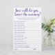 "¿Qué Tan Bien Conoce A Mamá?" ¿Quién mejor conoce a la futura madre? Una simple ducha de bebé o un juego de fiesta revelan sexo con un divertido y casual guión escrito a mano. El diseño clásico incluye un moderno superpuesto de tipografía con letras a mano. Para otros colores o productos a juego, por favor visite la tienda JustFharryn Zazzle, o contacte con el diseñador, c/o Fharryn@yahoo.com Todos los derechos reservados. #bohochic #zazzlemade
