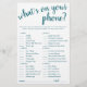 Simple tarjeta de puntos de juego "What's on Your Phone" con ducha/fiesta con un divertido guión con letras a mano. El diseño clásico incluye un moderno superpuesto de tipografía con letras a mano. Para otros colores o productos a juego, por favor visite la tienda JustFharryn Zazzle, o contacte con el diseñador, c/o Fharryn@yahoo.com Todos los derechos reservados. #bohochic #zazzlemade