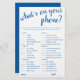 Simple tarjeta de puntos de juego "What's on Your Phone" con ducha/fiesta con un divertido guión con letras a mano. El diseño clásico incluye un moderno superpuesto de tipografía con letras a mano. Para otros colores o productos a juego, por favor visite la tienda JustFharryn Zazzle, o contacte con el diseñador, c/o Fharryn@yahoo.com Todos los derechos reservados. #bohochic #zazzlemade